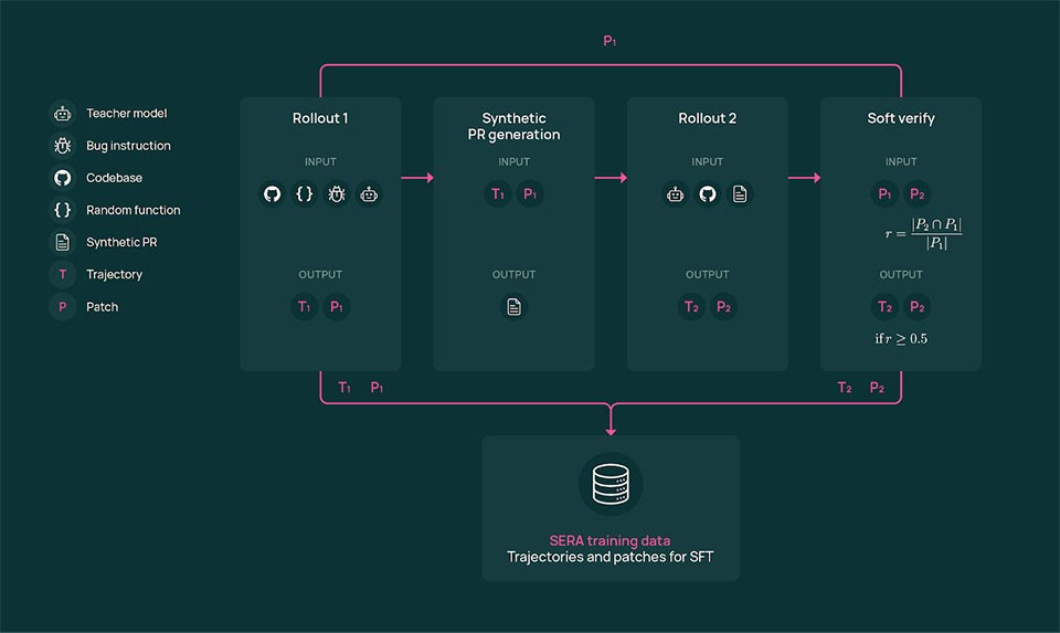 The creation of SERA appeared to happen by accident. Shen, a doctoral student at the University of Washington, and his research team of three, were experimenting with coding agents and discovered that “a lot of existing data generation strategies for coding agents were very cumbersome, hard for us to implement.” His team set off to eliminate or loosen constraints and requirements, such as unit testing, in the process. “What’s the easiest way to generate data so that we can experiment at scale?” he asks.