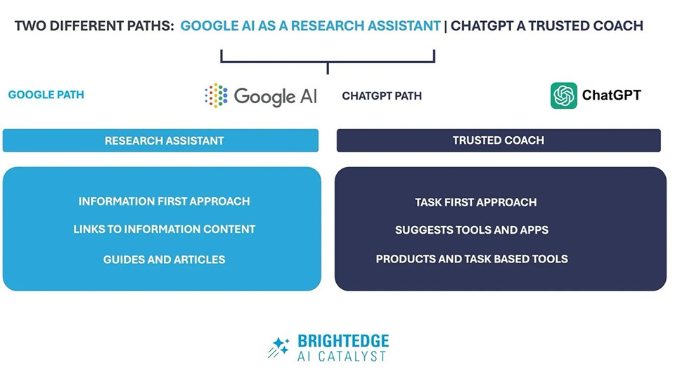 BrightEdge data shows a growing split in how AI tools guide users—Google delivers information, while ChatGPT drives action. Here's what that means for the future of search.