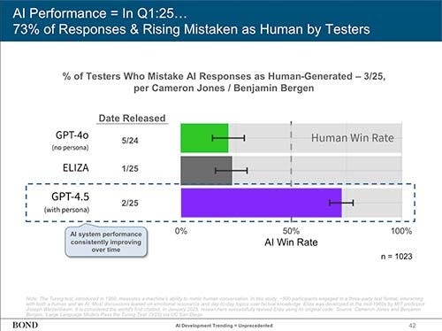 As AI models get more sophisticated and are imbued with persona capabilities, it’s becoming more challenging to identify whether the content is from a human or a machine. In April, OpenAI’s GPT-4.5 model passed the Turing Test, a barometer for human-like intelligence. This means that testers believed the LLM’s responses were human 73 percent of the time when it adopted a persona. This far surpassed other leading models, including GPT-4o and Meta’s Llama 3.1-405B.