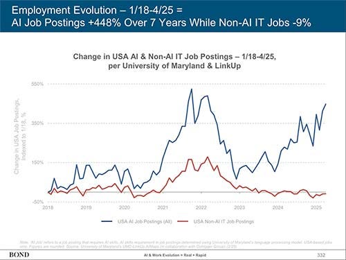 Having AI skills is becoming a prerequisite for securing a job in today's market. According to the University of Maryland and LinkUp, the number of AI job postings in the U.S. has jumped by more than 448 percent over the past seven years, while non-AI IT jobs have dropped by nine percent during that same period.