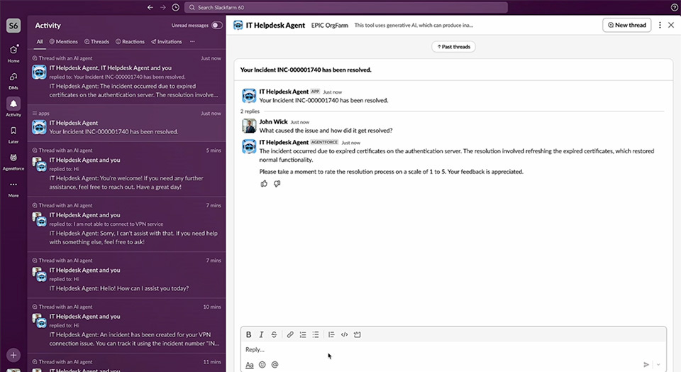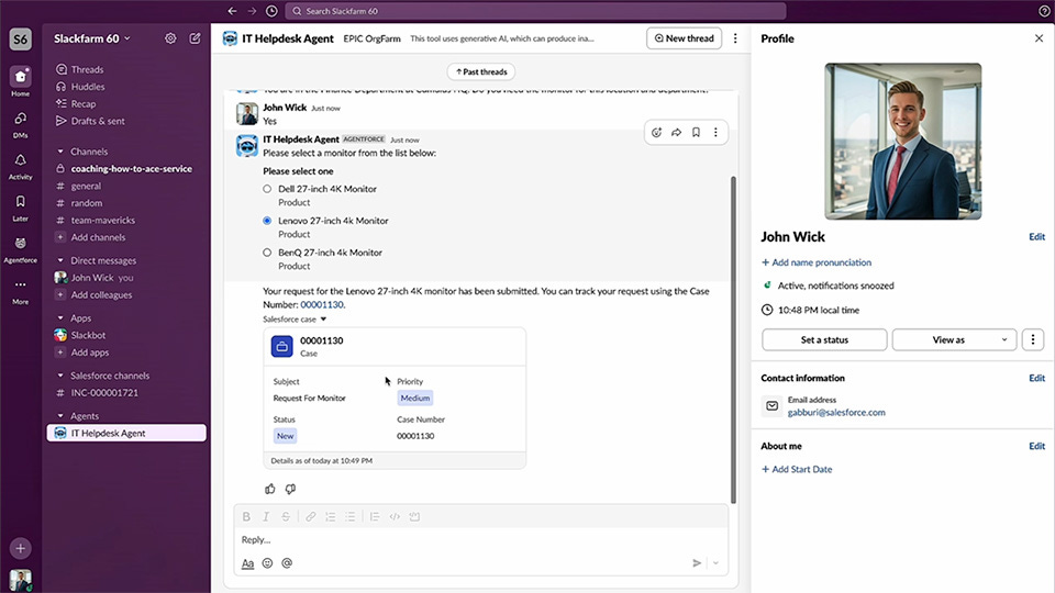 Seemingly unwilling to wait a few weeks, Salesforce has begun sharing more details about its agentic IT service. The company’s Executive Vice President and General Manager, Kishan Chetan, posted on LinkedIn a teaser GIF showing the new platform’s user experience. He added that it “combines 25 years of Salesforce customer service expertise with the power of Slack and Agentforce to deliver a modern, conversational, and agentic support solution.”